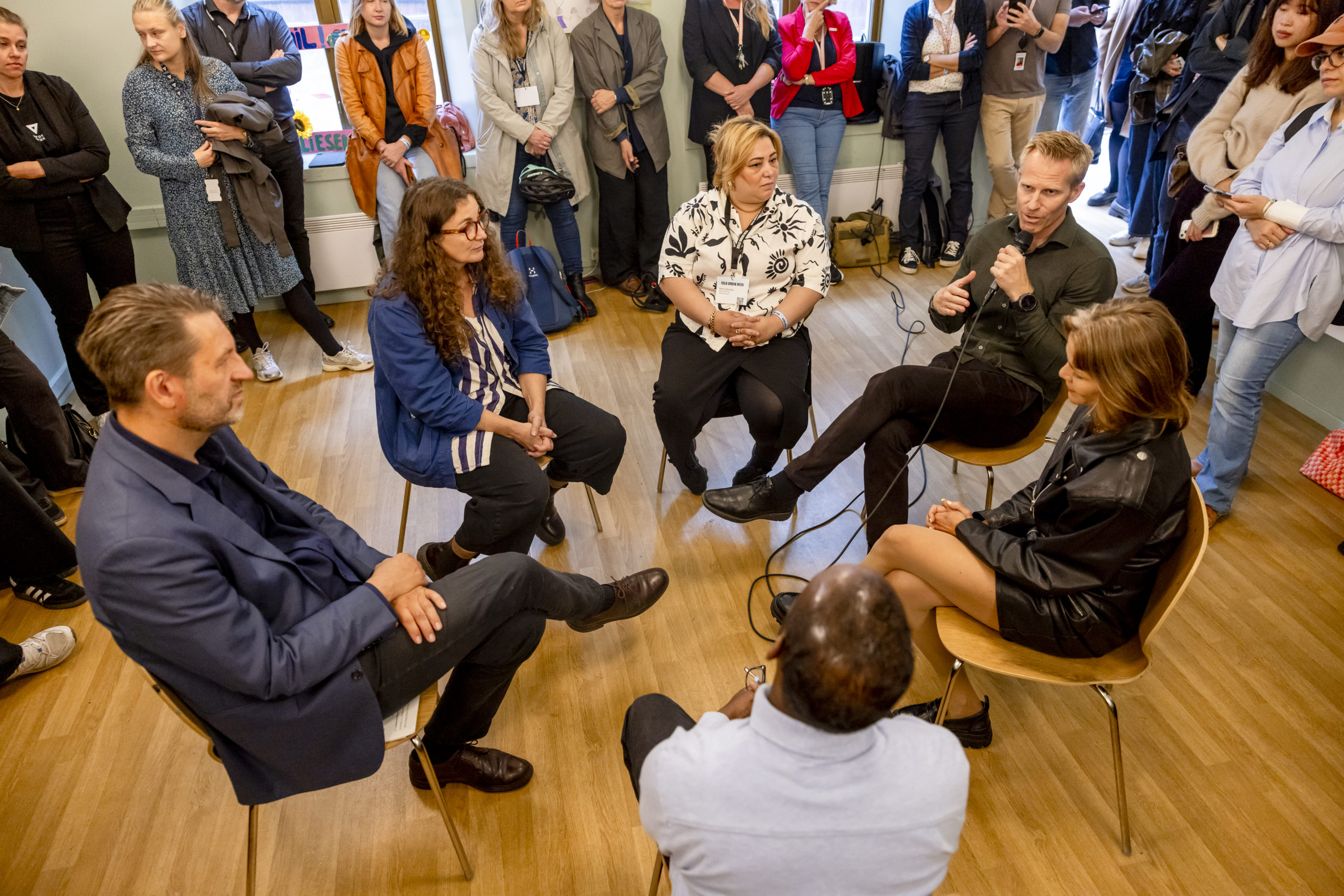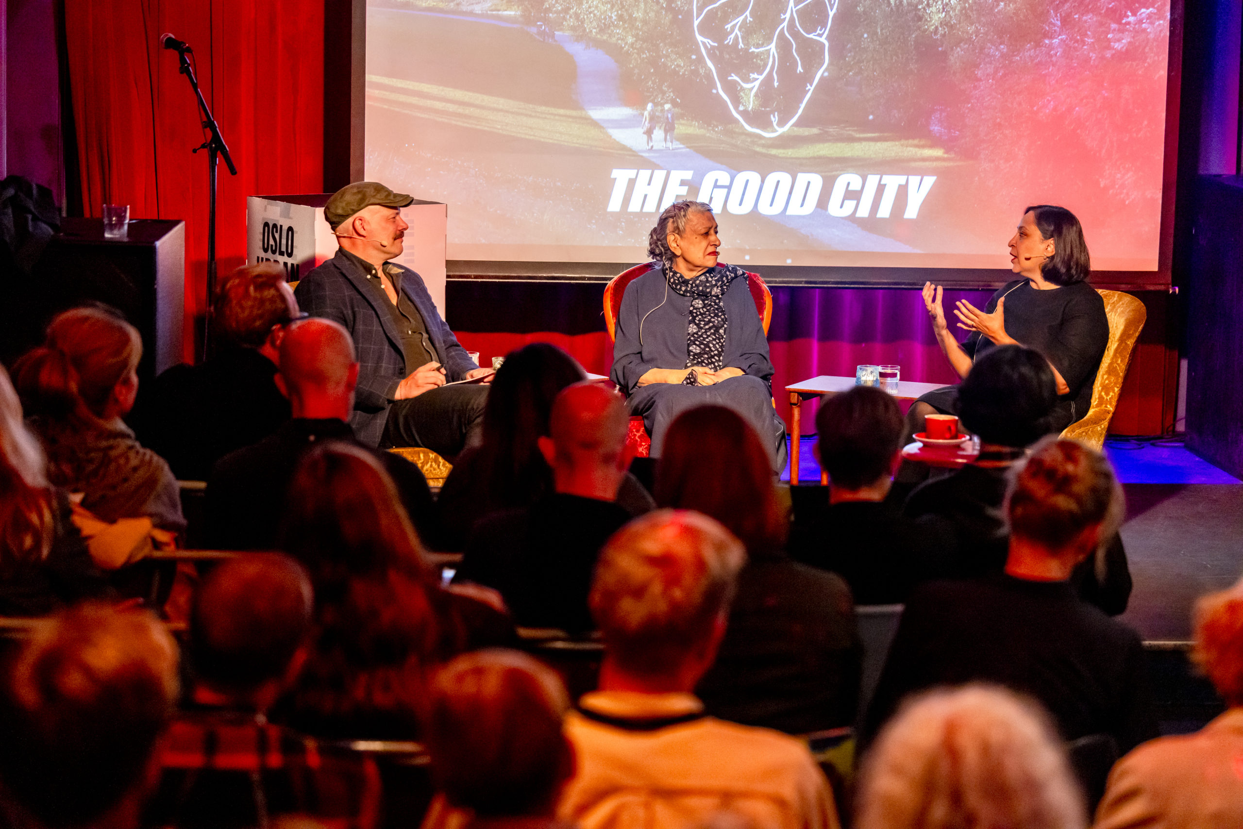 Åpningen ble avsluttet med en panelsamtale mellom YasmeenLari, Finn Williams, ordfører Anne Lindboe og Sonja Horn. Samtalen gikk inn i kjernen av debatten om Grønland: Hvordan kan man i større grad gi innbyggerne plass i utviklingen av byen vår? Og hvordan kan politikere, planleggere og arkitekter legge til rette for den inkluderende og gode byen?